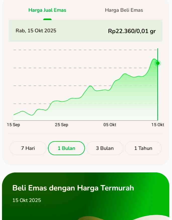 Urusan mendaftar Tabungan Emas Pegadaian aplikasi Tring Pegadaian awal Oktober 2025 selesai, cukup melegakan suasana hati. Namun tidak lengkap kalau belum mencoba menabung emas lewat rekening yang baru saja dibuat. Walau mendung gelap kadang disertai hembusan angin dan hujan belum turun. Suasana sejuk menyegarkan pikiran dan keputusan untuk berinvestas.