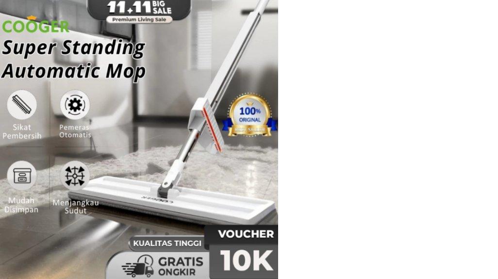 5. COOGER Pel Peras Otomatis Pel Lantai Super Berdiri Dengan Kain Pel Microfiber Ultra White Standing: Rp49.900 - Rp54.900