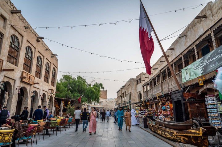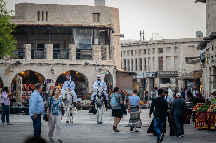 Pengunjung berjalan di area kuliner dan suvenir di Souq Waqif, Doha, Qatar, Rabu (5/11/2025).