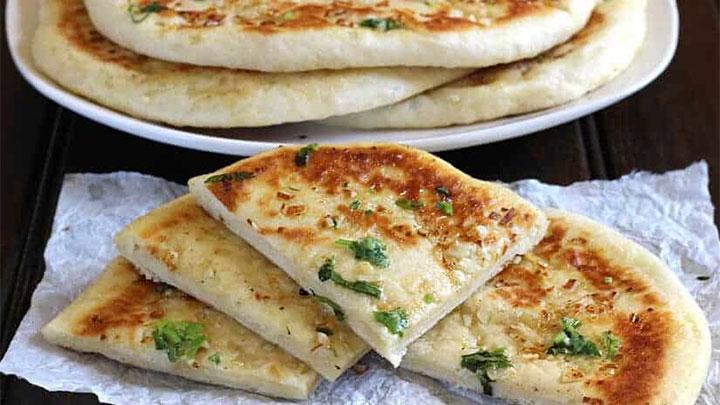 Garlic butter naan yang biasa disajikan sebagai pendamping kari, dipanggang dalam oven tradisional tandoor hingga menghasilkan tekstur lembut dan kenyal. Setelah matang, permukaannya diolesi mentega dan taburan bawang putih cincang, menciptakan kombinasi rasa gurih dan aroma khas yang menggugah selera. Selain varian garlic butter, dua jenis naan yang juga masuk dalam daftar, yaitu naan polos di peringkat ketujuh dan cheese naan di posisi ke-52.